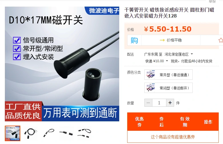 门禁这里我们主要需要监测门的状态,防止忘记关门,我们常采用干簧管来监测,有埋入型的可以直接塞到防盗门里面,长这样